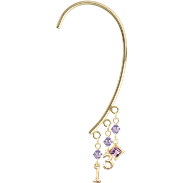 心を惹きつけるイヤーカフ(No61) スワロフスキーバイオレットと月の形に敷き詰めたラインストーンが美しいイヤーカフです。特別な1013記念日のお祝いにぴったりのデザインで、耳元に華やかさを加え、見る人を魅了します。 ■ カラー/サイズ/バリエーション ・耳にひっかけるタイプのイヤーカフ ・全長8cm程 ■ 素材/製造国 ・スワロフスキーバイオレット6mm ・月型ラインストーンデザイン ・数字チャーム1013 亜鉛合金 メッキはニッケルフリー ・日本製、手作り品 ■ お手入れ/取り扱い注意事項 ・使用後は柔らかい布で優しく拭いて、湿気の少ない場所に保管してください ・強い衝撃や高温の環境にはご注意ください ■ 発送・注文に関する情報や注意事項 ・ご注文確定後、迅速に発送を行います ・送料は全国一律500円です ■ その他の情報や注意事項 ・製作過程により、色合いや形状に若干の違いが生じる場合がございます ・返品・交換は未使用品に限りますのでご注意ください。